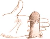 3- امسك القضيب بين أصابع السبابة و الإبهام حيث يكون الإبهام على الجهة الأمامية للقضيب و السبابة على الجدار الخلفي للقضيب, قم بأخذ نفس عميق و احبس النفس ثم أعصر القضيب بين إصبعي السبابة و الإبهام ابتداء من بداية القضيب هذا التمرين يؤدي إلى زيادة تدفق الدم إلى رأس القضيب.