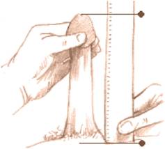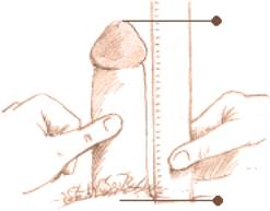 – امسك الذكر من المنطقة التي تقع أسفل رأس الذكر و قم بسحبه إلى الأمام و ضع مسطرة بجانب الذكر عمودية على عظم العانة و سجل قراءة المسطرة إلى قمة رأس الذكر.