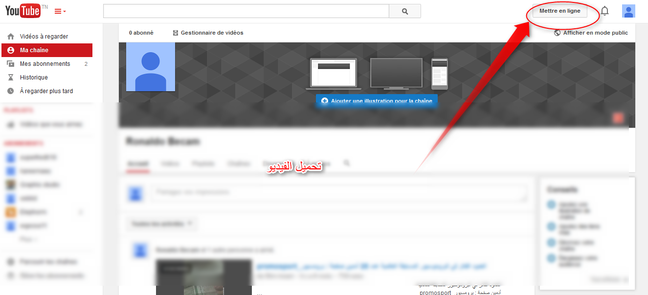 تابع الصورة لمعرفة كيفية اضافة فيديو لتتمكن من الربح من اليوتيوب