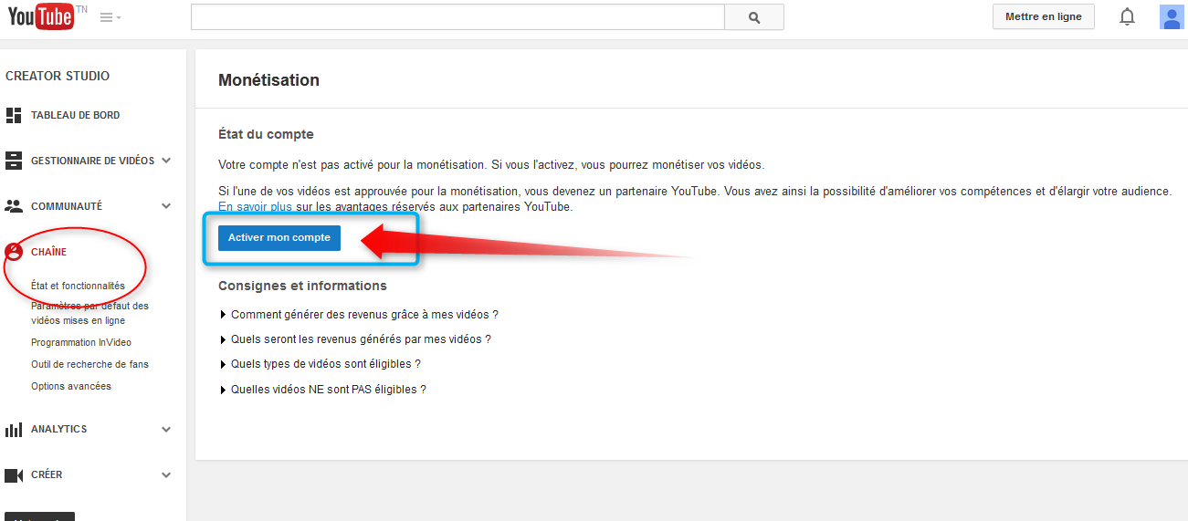 الخطوة الثالثة : تفعيل الربح من اليوتيوب(اليوتيوب بارتنر)